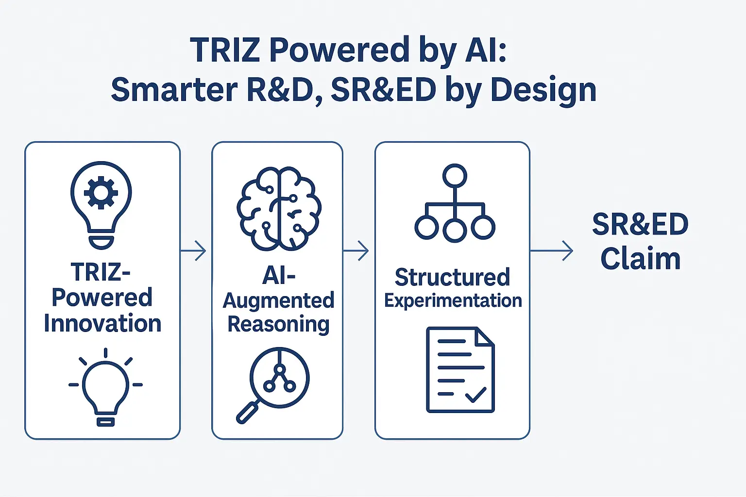 🧩1. Clarify the Problem | – TRIZ contradiction analysis to define true innovation challenges – AI-supported patent + literature scan to surface prior art – Eligibility map cross-checked against CRA criteria | ✅ “We’re finally solving the right uncertainty.” ✅ Avoid redundant R&D and claim ineligible work | ✔ Technological uncertainty clearly justified as non-obvious and unsolved |